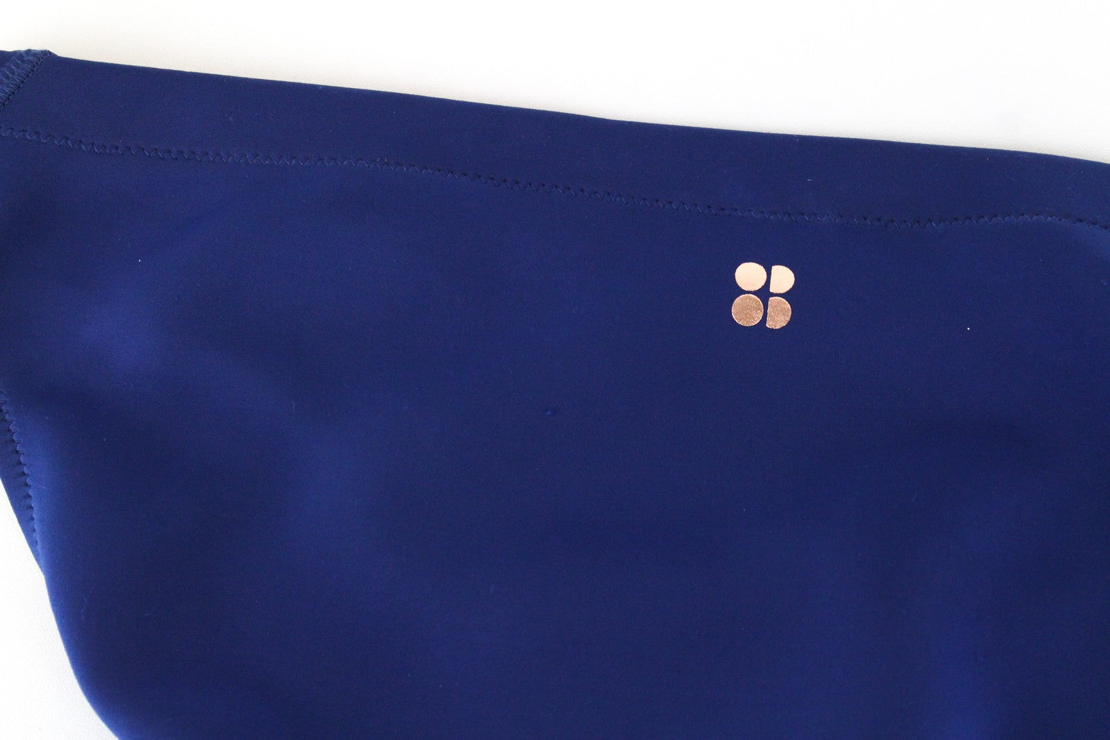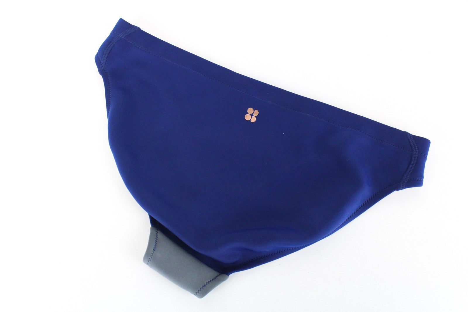 SWEATY BETTY Women's Swimwear ~M Blue Grey Logo Bikini Bottom Beach Fit