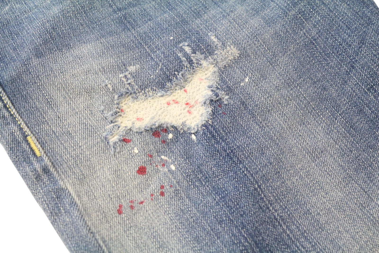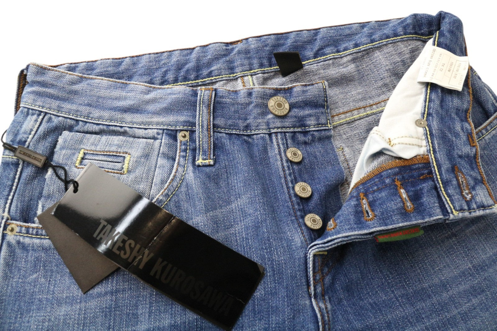 TAKESHY KUROSAWA TK 72 Men's Jeans W32 Blue Slim Buttoned Non-Stretch Distress