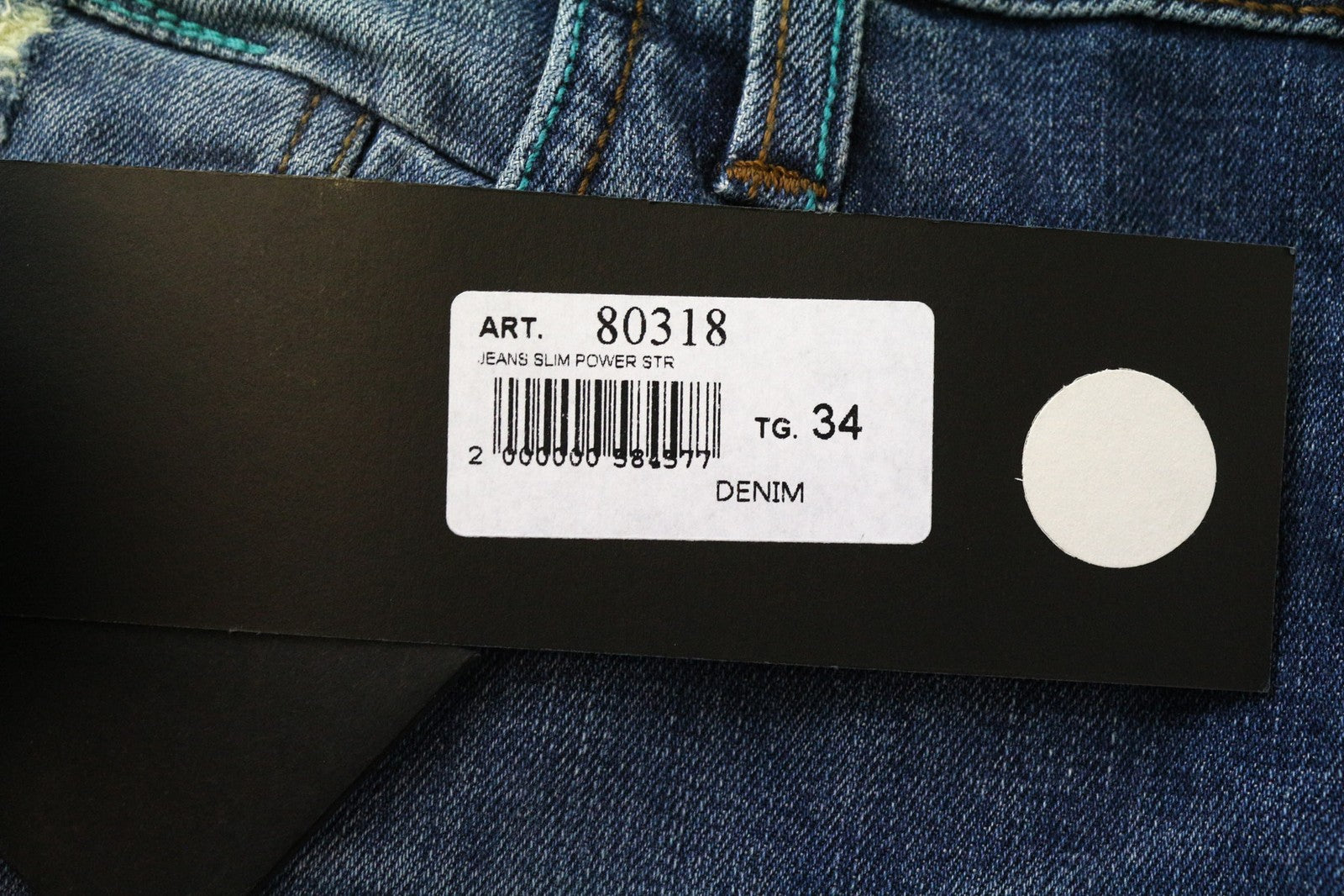 TAKESHY KUROSAWA TK 75 Men's Jeans W34 Blue Distressed Slim Stretch Button Fly