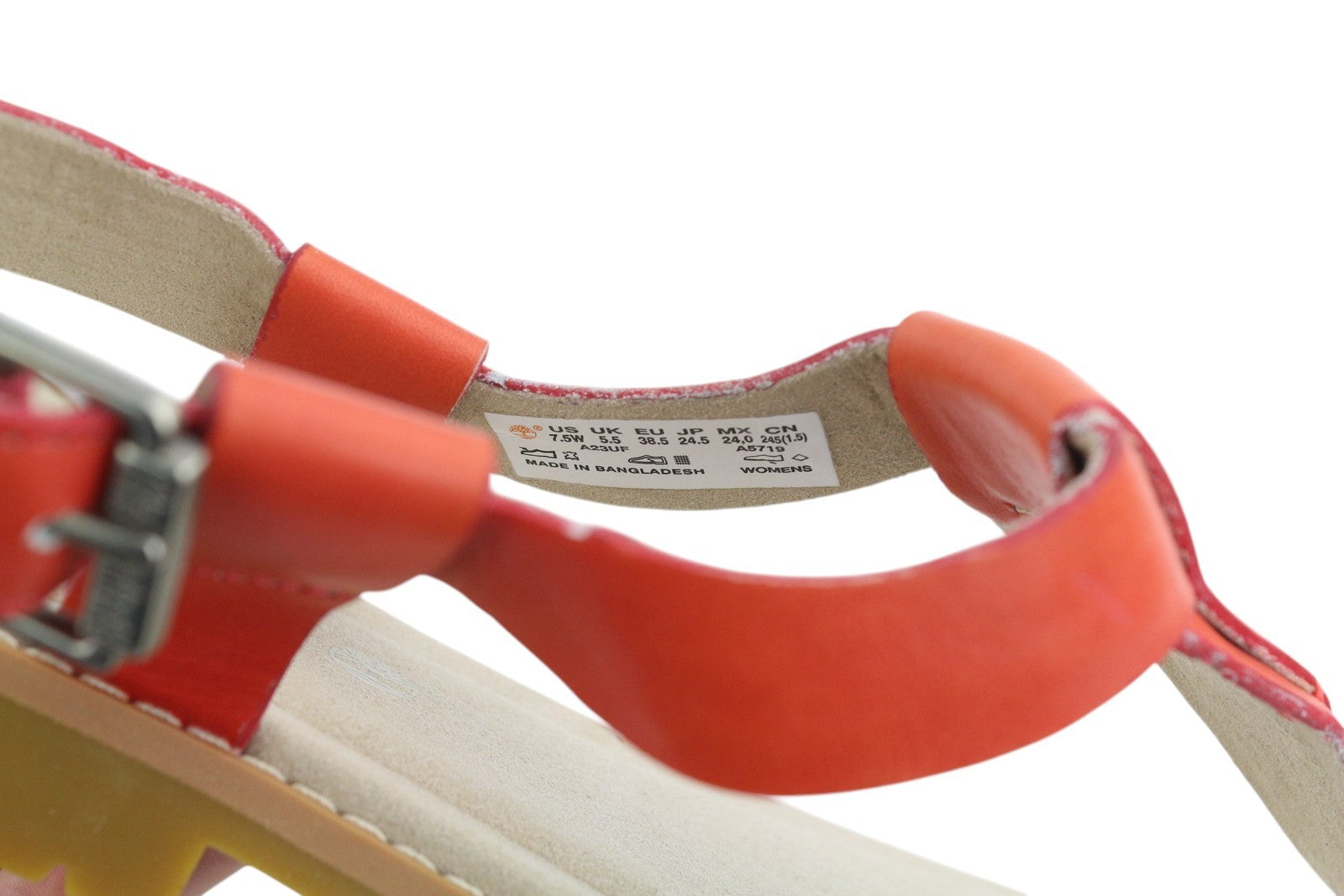 TIMBERLAND A23UF Women Sandals EU38.5 Orange Leather Open Toe Flat Logo Casual