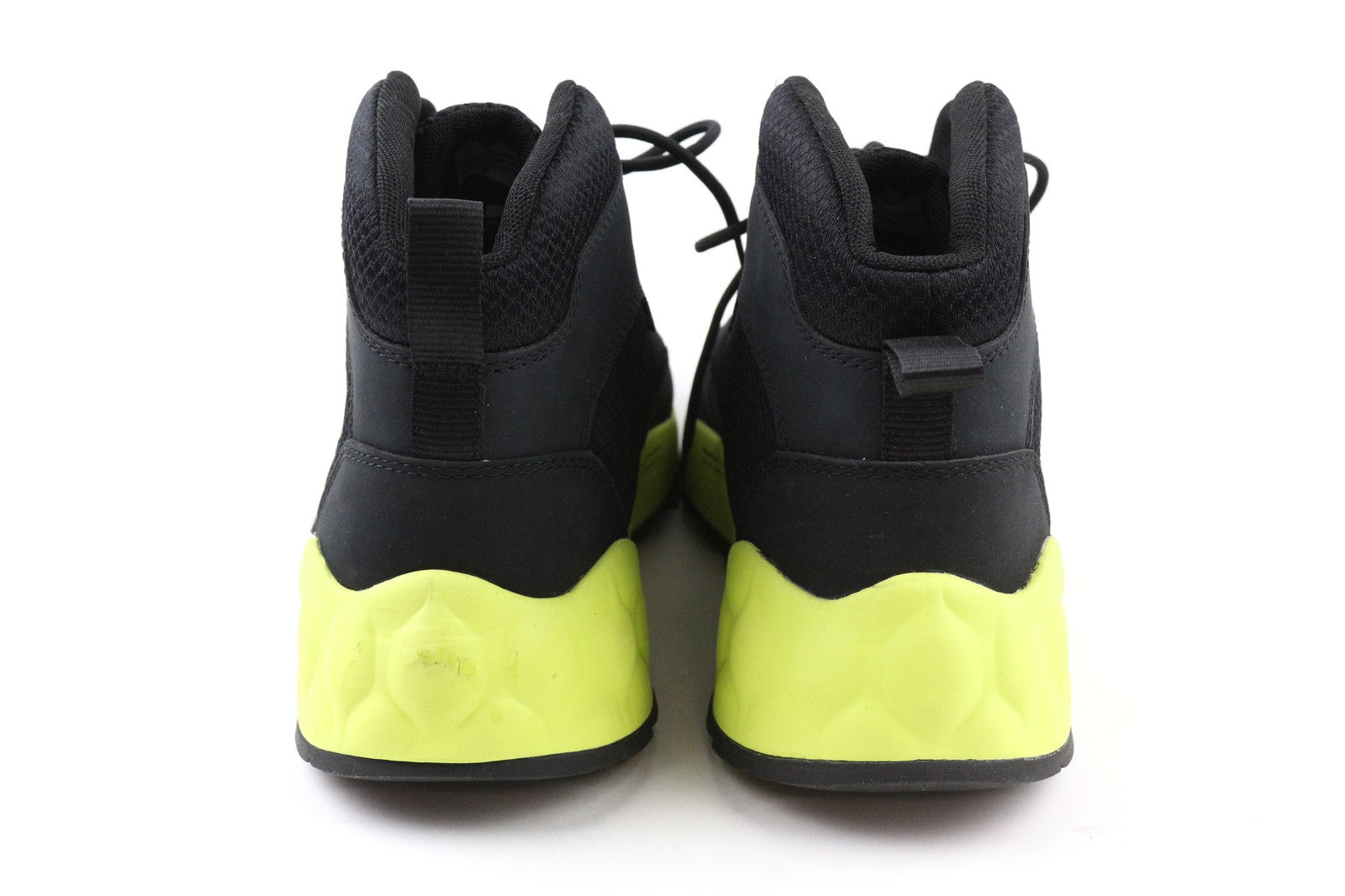 Condition: Small imprints in several places. Sticker stain on left shoe. Please see added photos.