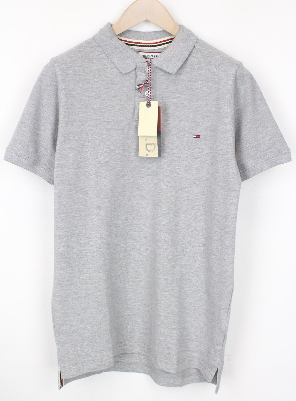 TOMMY HILFIGER DENIM Men T-Shirt M Grey Melange Polo Cotton Jersey Style