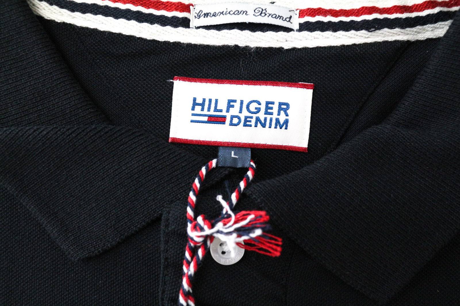 TOMMY HILFIGER DENIM Men's Polo T-Shirt L Navy Blue Short Sleeve Cotton