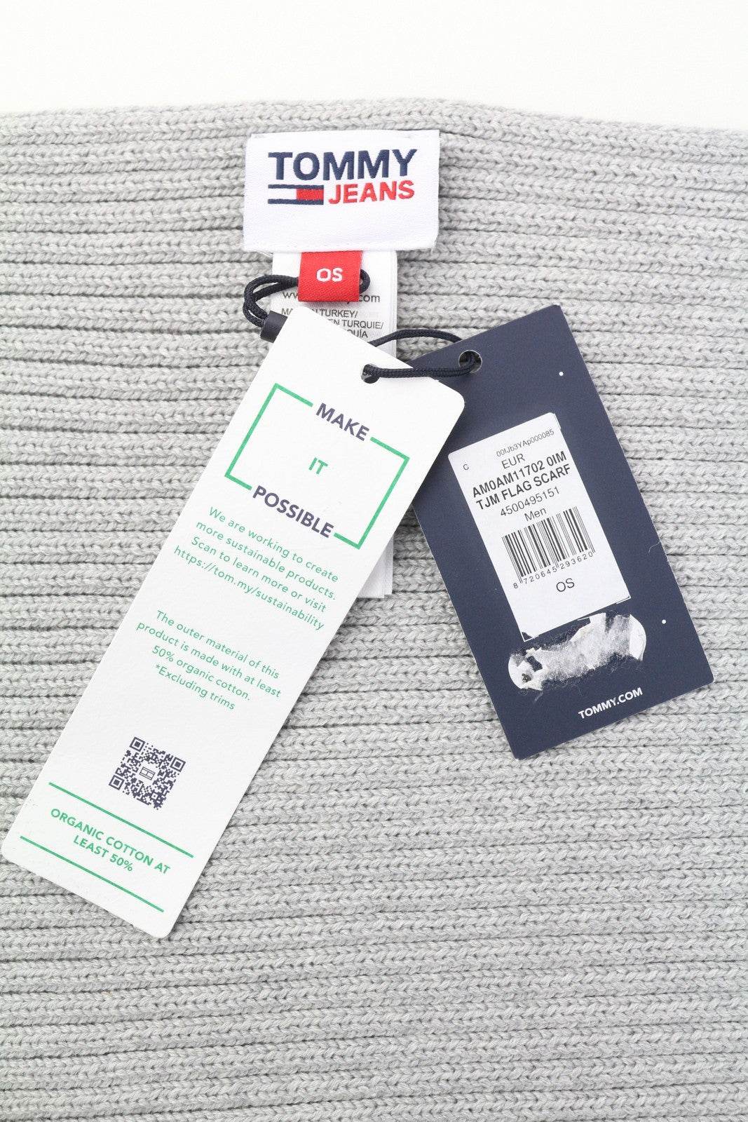 TOMMY HILFIGER Flag Men Scarf OS Melange Grey Tight-Knit Embroidered Logo Unisex
