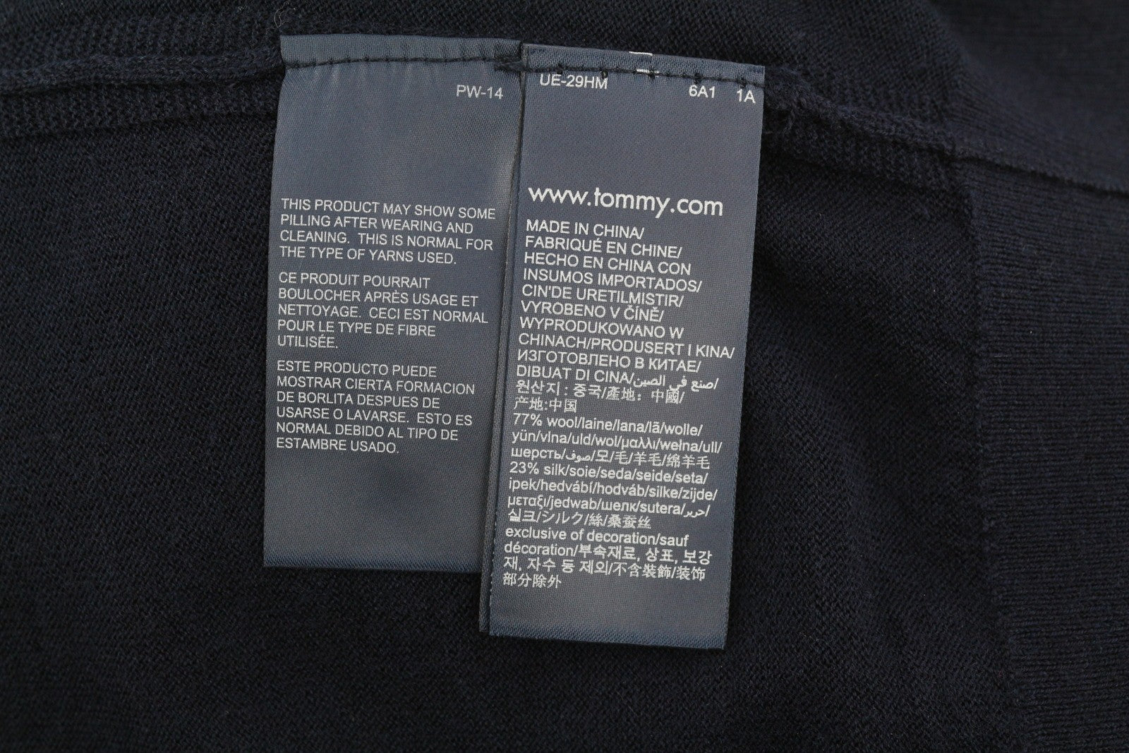 TOMMY HILFIGER Luxury Wool Silk Men Jumper M Dark Blue Pullover Crew Neck Knit
