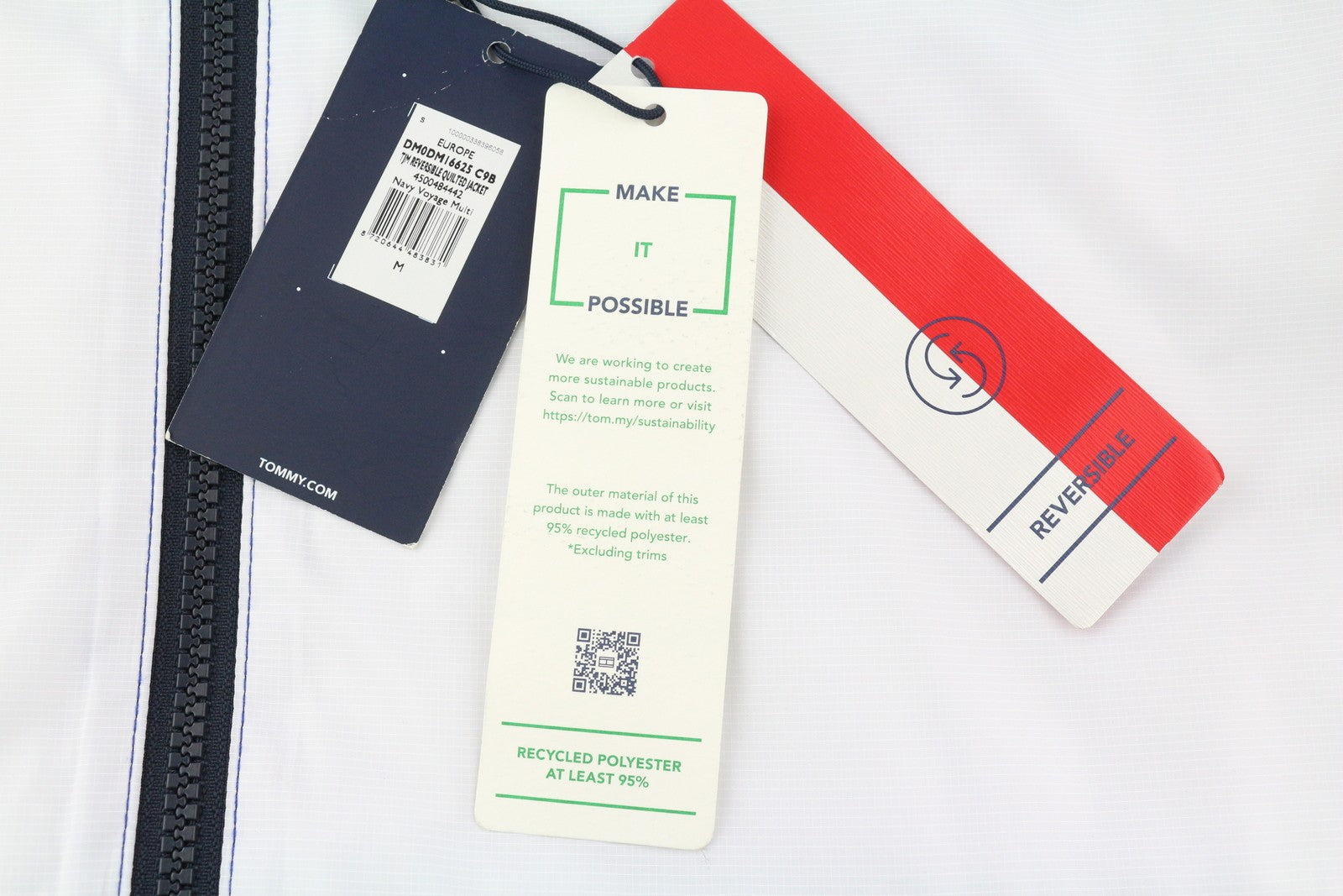 TOMMY HILFIGER Reversible Quilted Men Jacket M Blue Quilted Hooded Zip RRP€239
