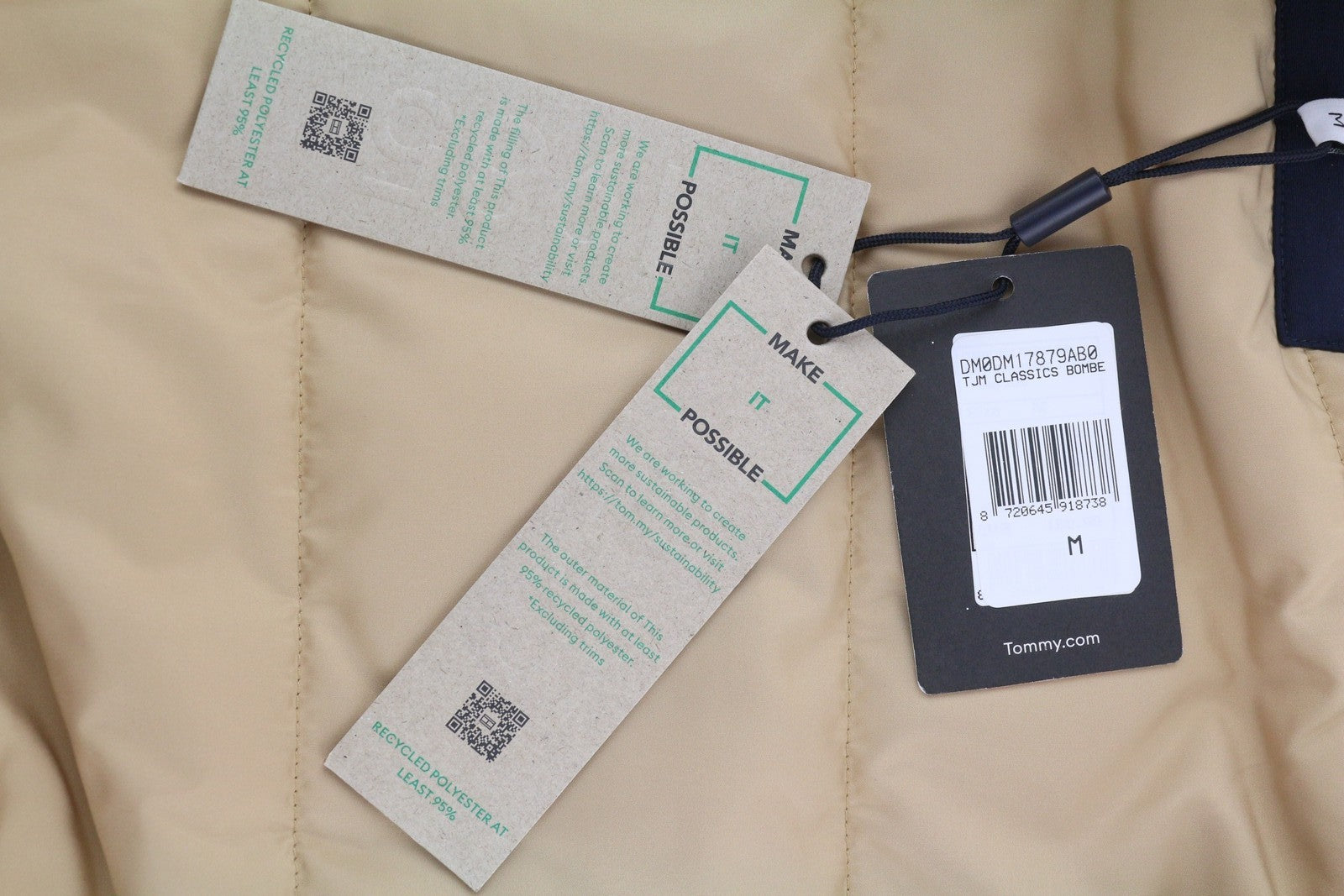 TOMMY HILFIGER Tjm Classics Bomber Men Jacket M Beige Padded Full Zip RRP€209