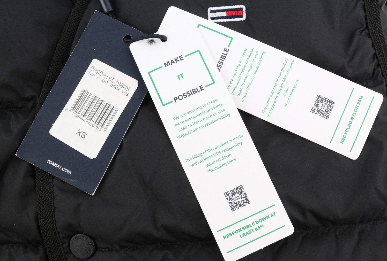 TOMMY HILFIGER Tjm Light Down Men Waistcoat XS Black Duck Down Filled RRP€149
