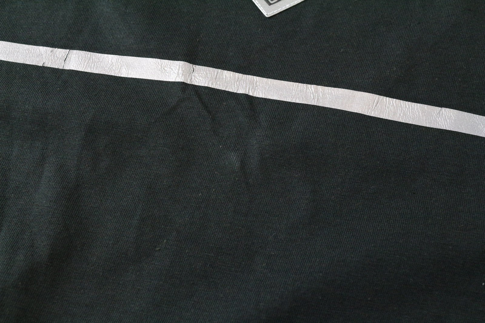 CONDITION: New with defects. Crooked line on the back. Stain on the right sleeve. Please see added photos.