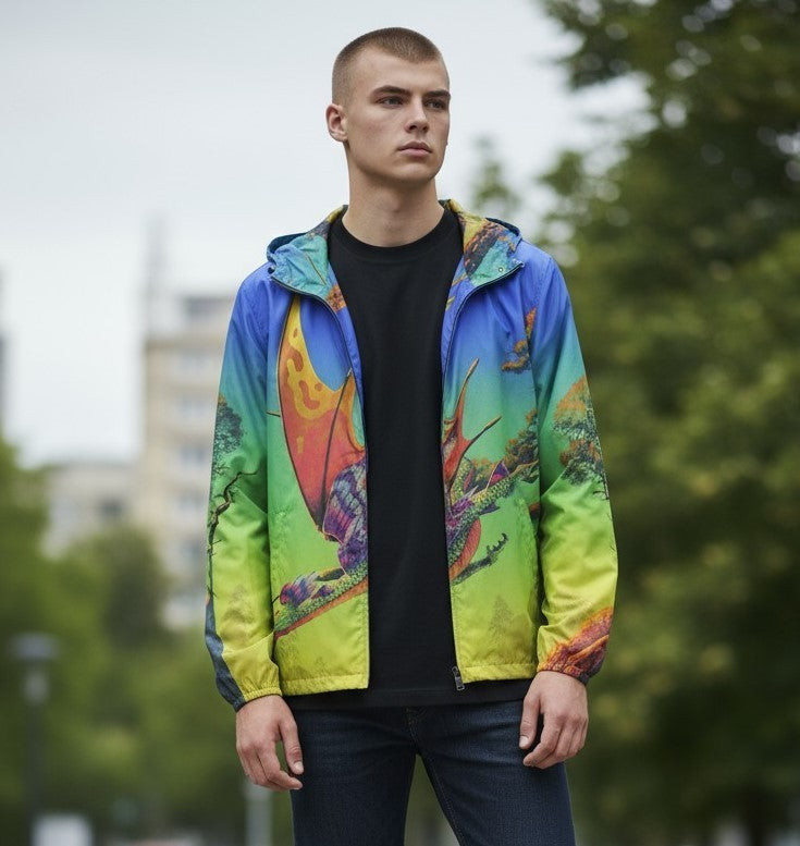 VALENTINO Men Jacket 48 Dragon Print Mesh Lined Hooded Zip Lightweight RRP1800
