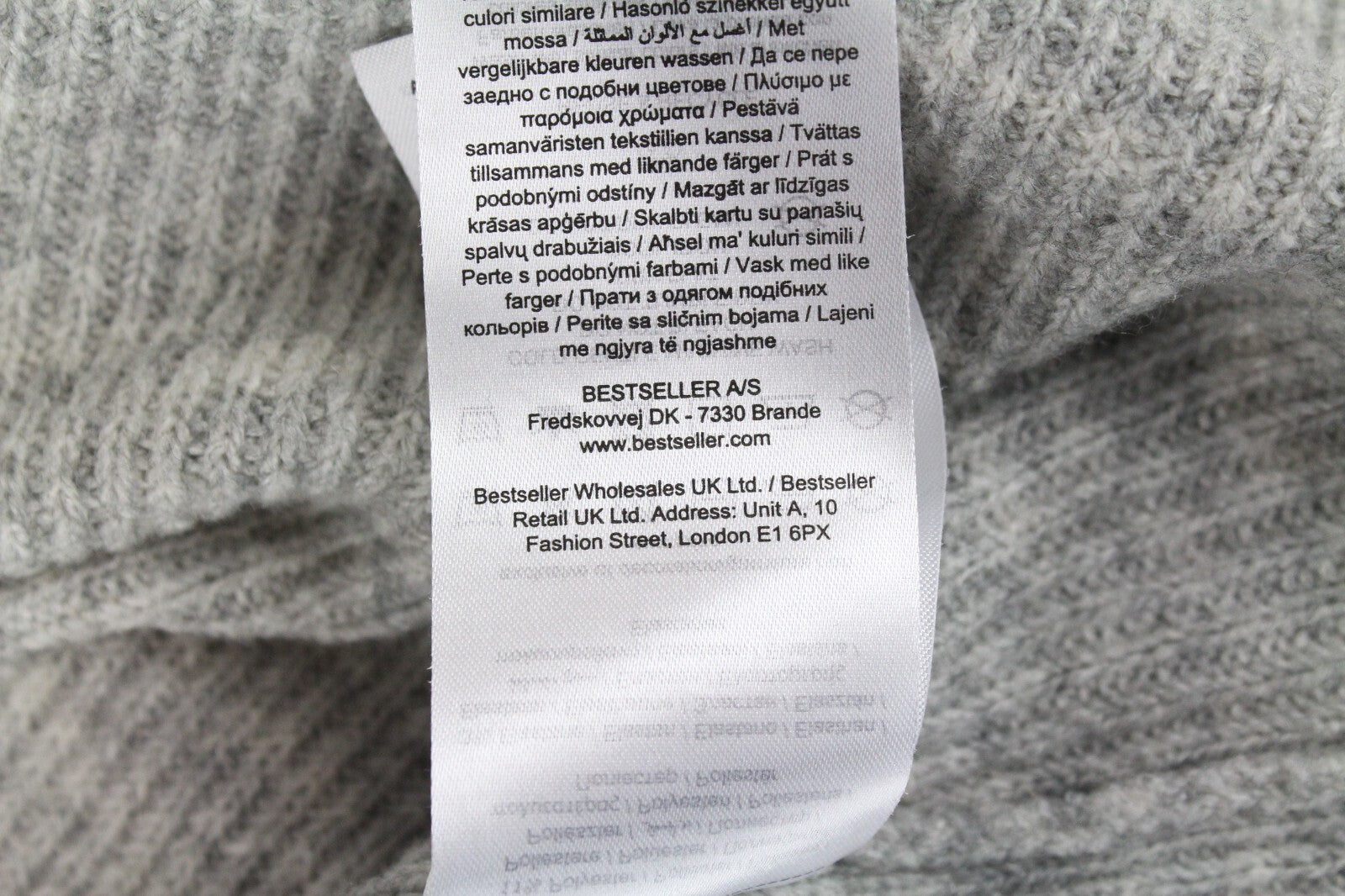 Vero Moda Womens Sweater XL Grey Melange High Neck Long Back Tight-Knitted