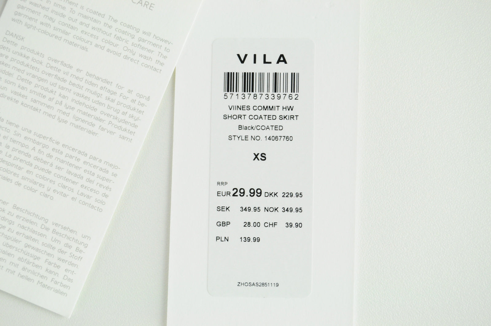 VILA Viines Commit Women Skirt XS Black Coated Zipped Short Stretch Fitted