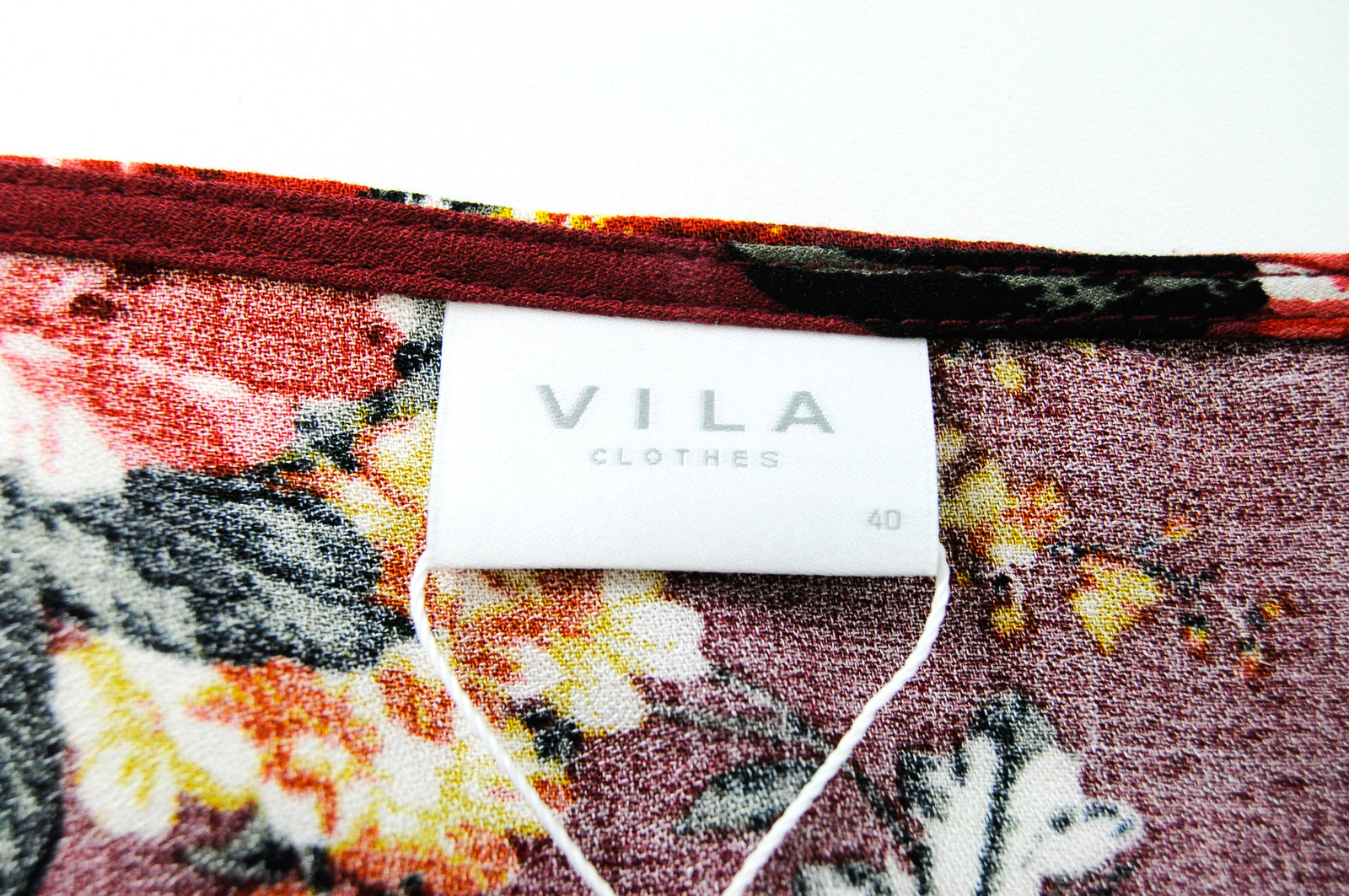 VILA Visaxa Women Blouse EU40 Red Long Sleeved Flower Pattern V-Neck Pullover