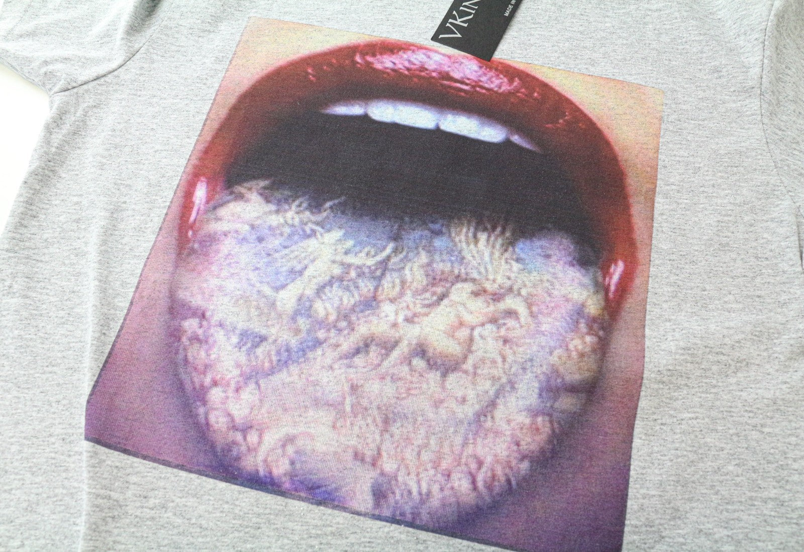 VKING Men's Logo T-Shirt M Grey Cotton Short Sleeve Printed Pullover Top