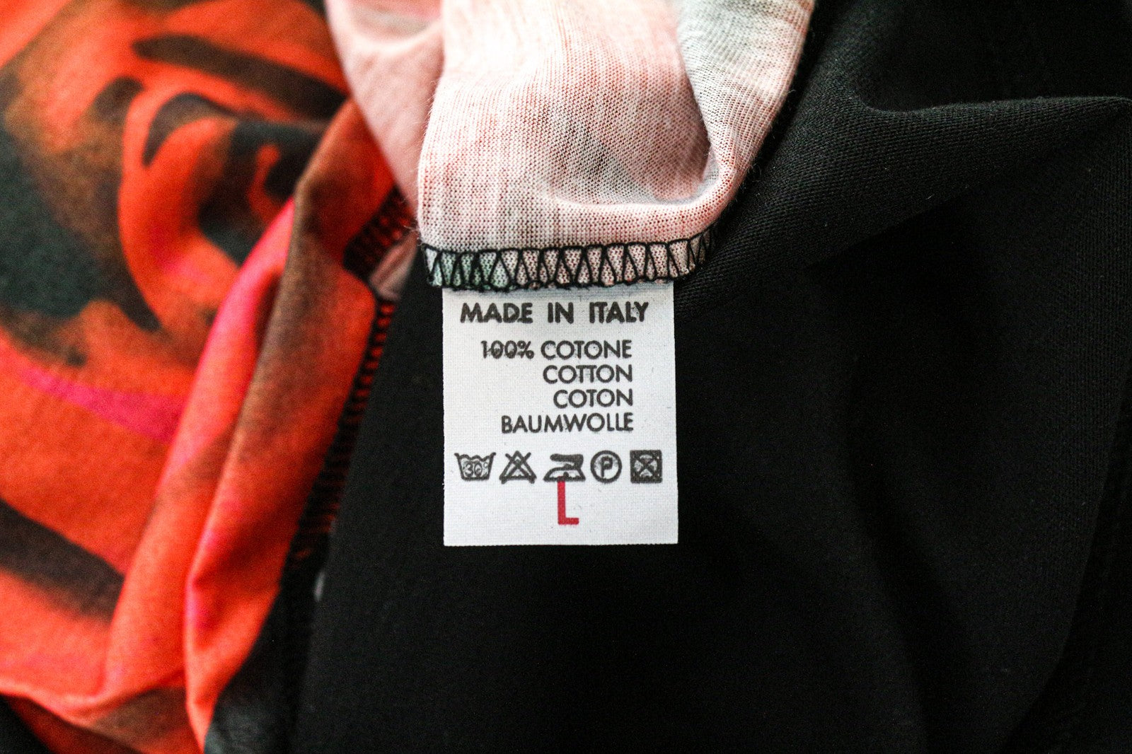 VKING Men's T-Shirt L Red Black Washed Roses Graphic Pure Cotton Short Sleeve