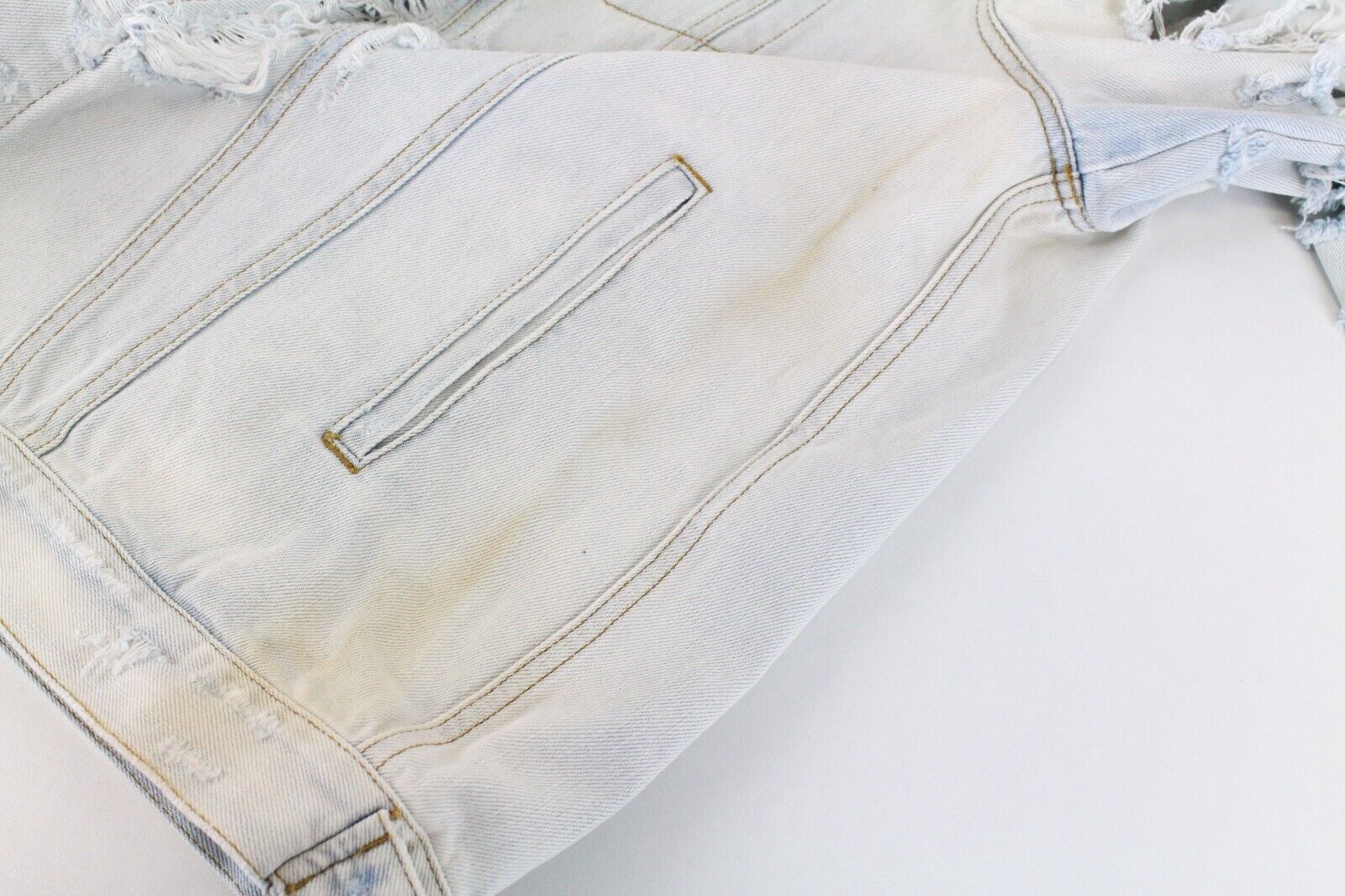 CONDITION: New with defects. Stains on the left side and left sleeve at the front. Please see added photos.