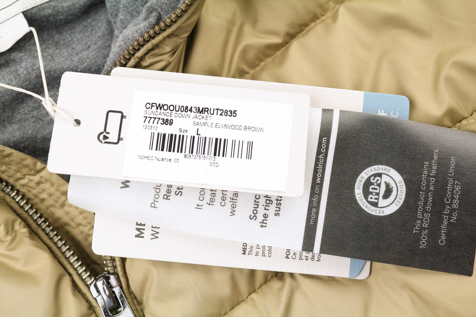 WOOLRICH Sundance Down Men's Jacket L Brown Quilted Padded Zip High Neck