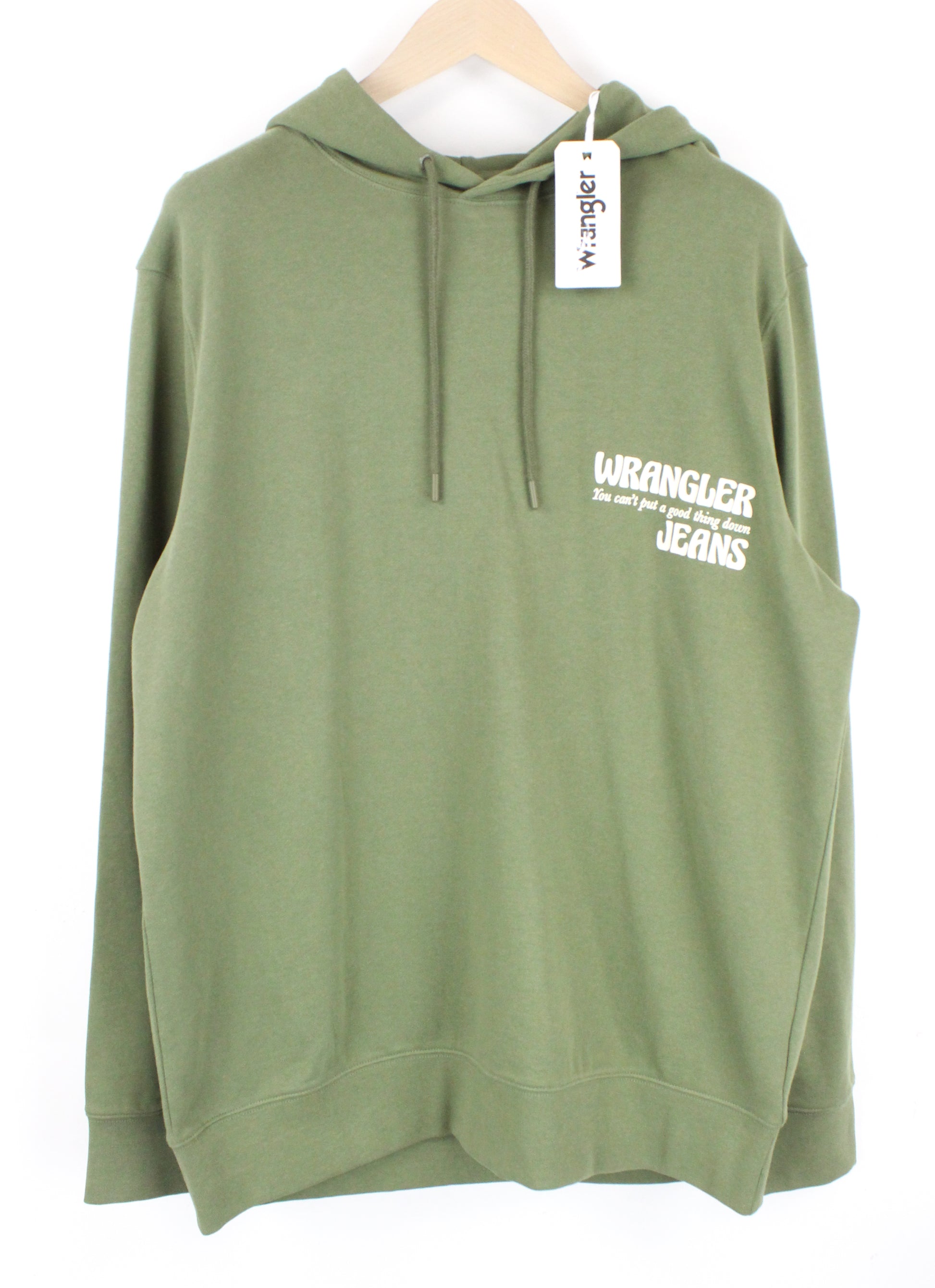 WRANGLER Men's M Green Hooded Slogan Fleece Sweatshirt