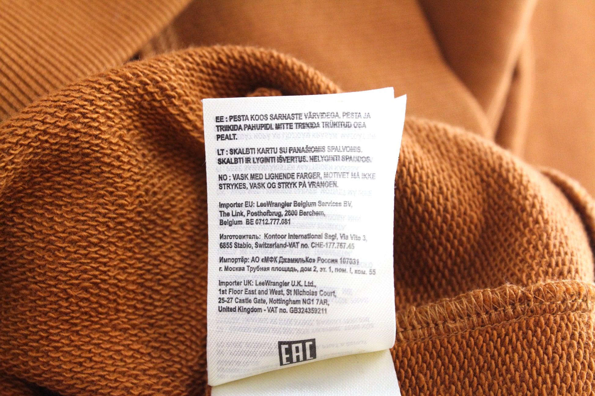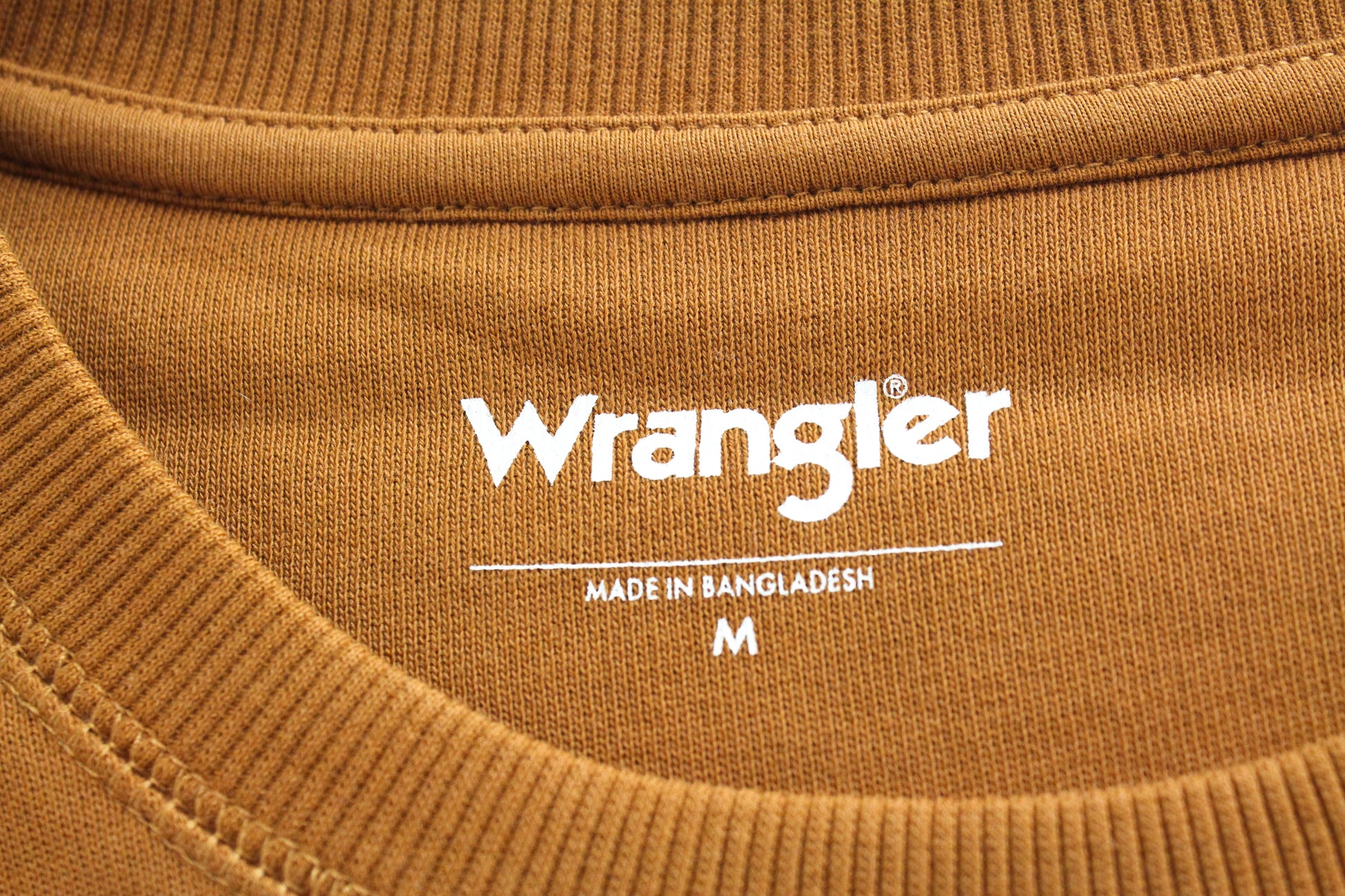 WRANGLER Men's M Nutmeg Brown Fleece Sweatshirt Crew Neck Logo Print
