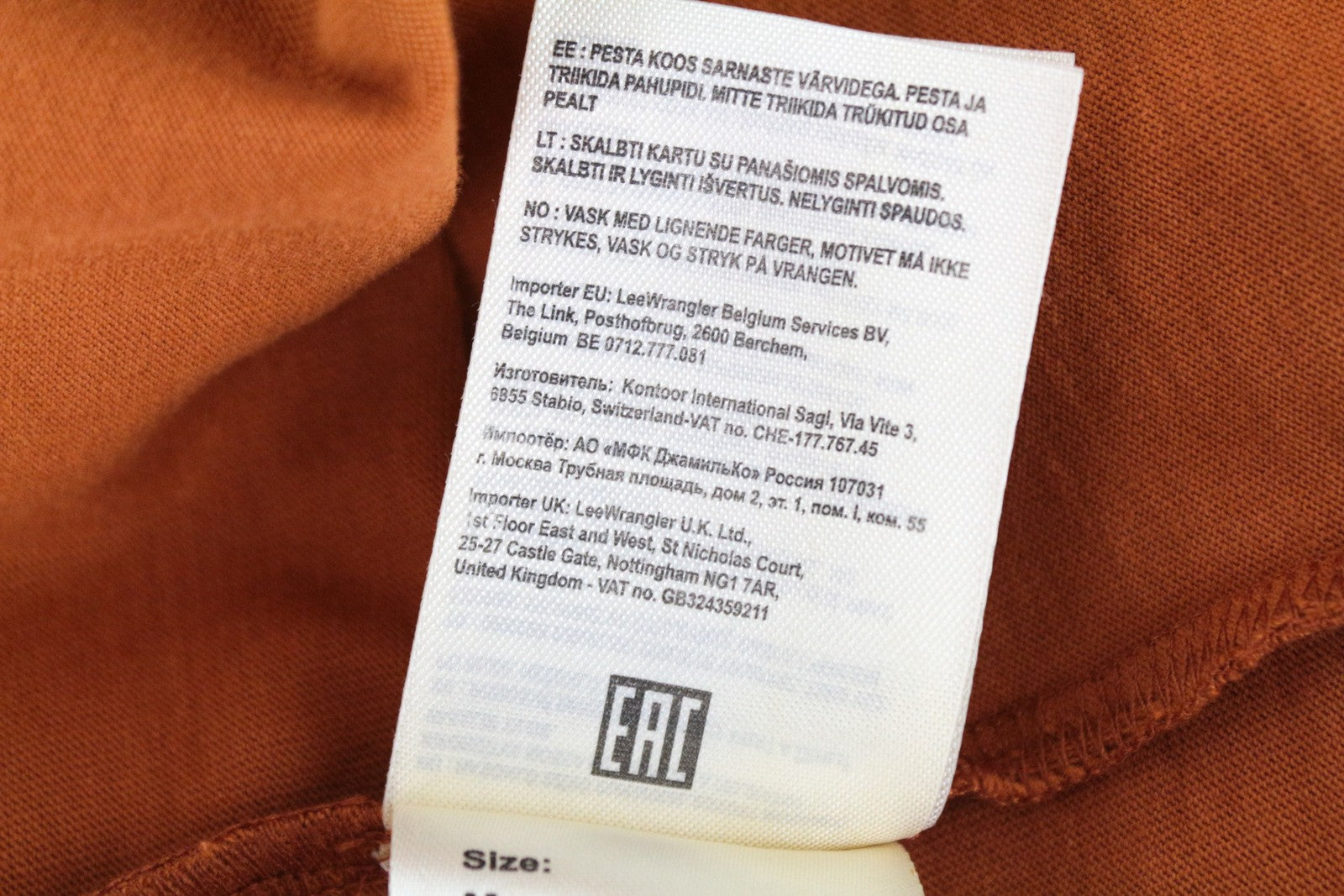 WRANGLER Men's M Orange Cotton Pullover Shirt Long Sleeve Casual Logo Style