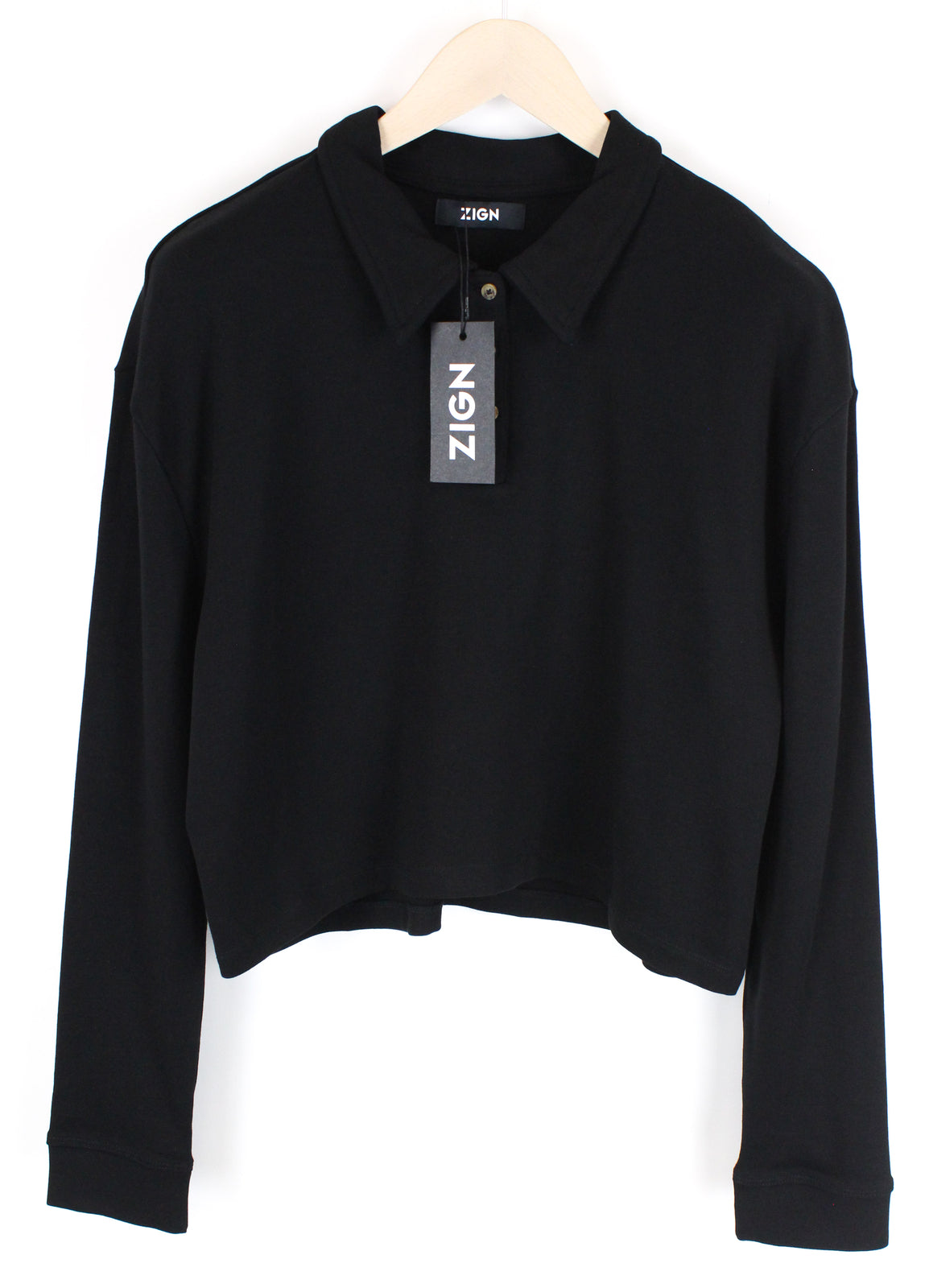 ZIGN Women Shirt XL Black Cropped Polo Collar Jersey Cotton Blend Stretch